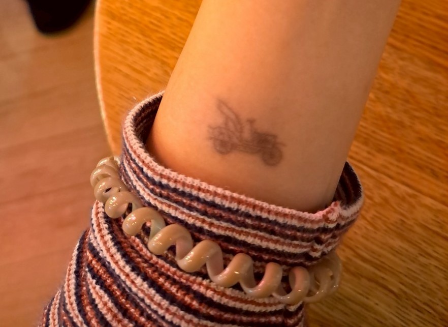 入場料を払って、チボリ公園に入った方がフードホールに入る場合は手に再入場のハンコを押してもらえるので食事をし終わったら再度遊園地のほうに戻ってくることができます。入り口にいる係の方にハンコを押してもらうのをお忘れなく。バイクのハンコでした↓