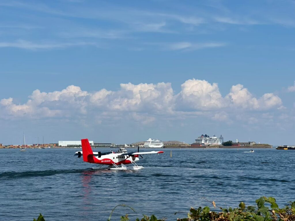 歩いていると大きい音が聞こえてきて、近くに水上飛行機の発着所があるようでした。